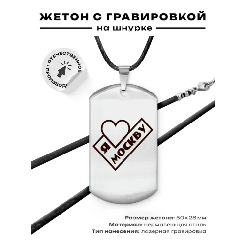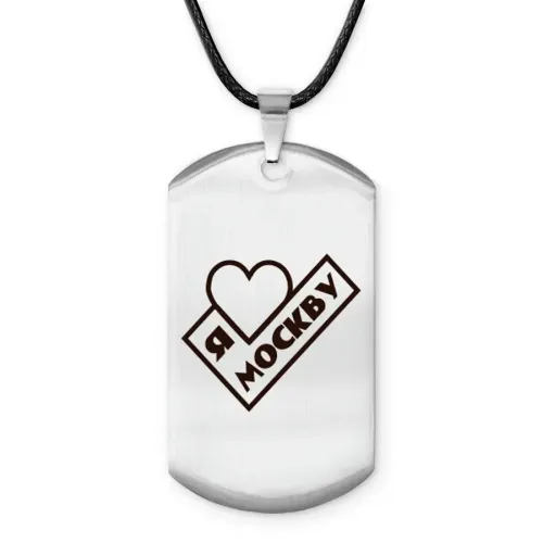 Амулет-жетон 'Я люблю Москву' — сувенирный аксессуар из полированной нержавеющей стали с гравировкой.