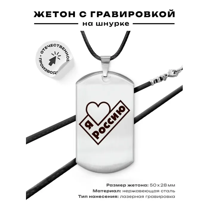 Амулет-жетон сувенирный из полированной нержавеющей стали с гравировкой.