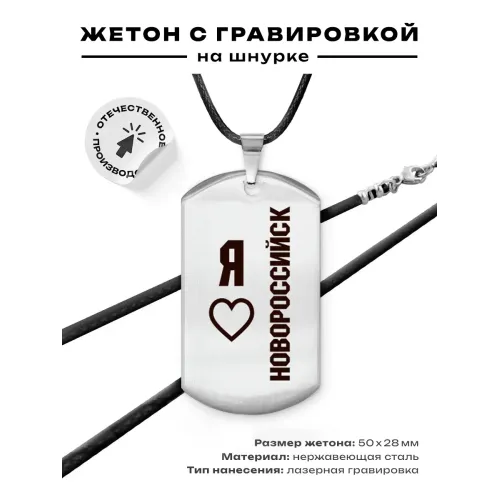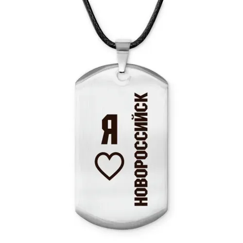 Амулет-жетон «Я люблю Новороссийск» — сувенирный аксессуар из полированной нержавеющей стали с гравировкой.