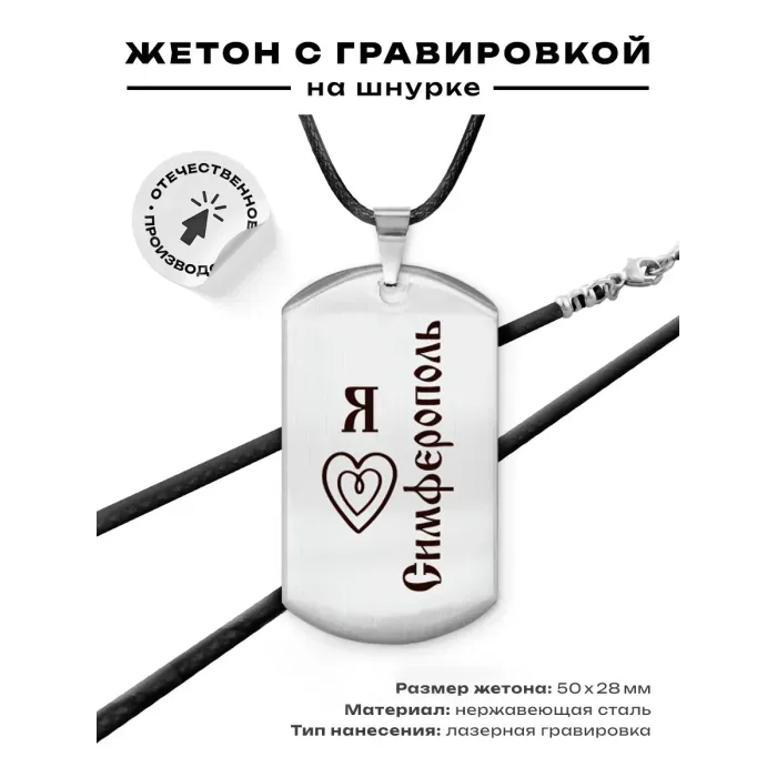 Амулет-жетон «Я люблю Симферополь» — сувенир из полированной нержавеющей стали с гравировкой.