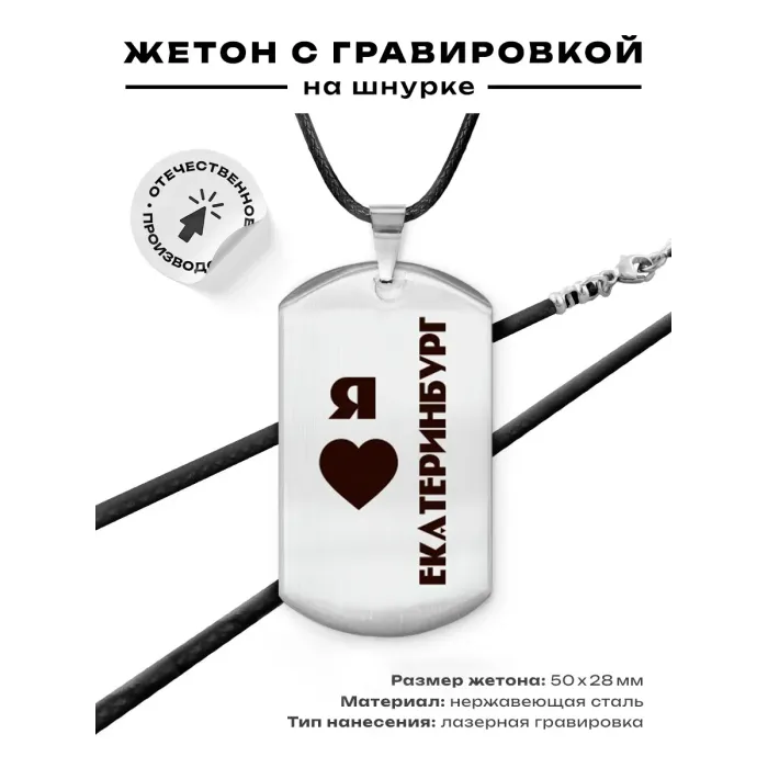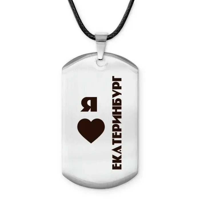Амулет-жетон «Я люблю Екатеринбург» — сувенирный аксессуар из полированной нержавеющей стали с односторонней гравировкой.