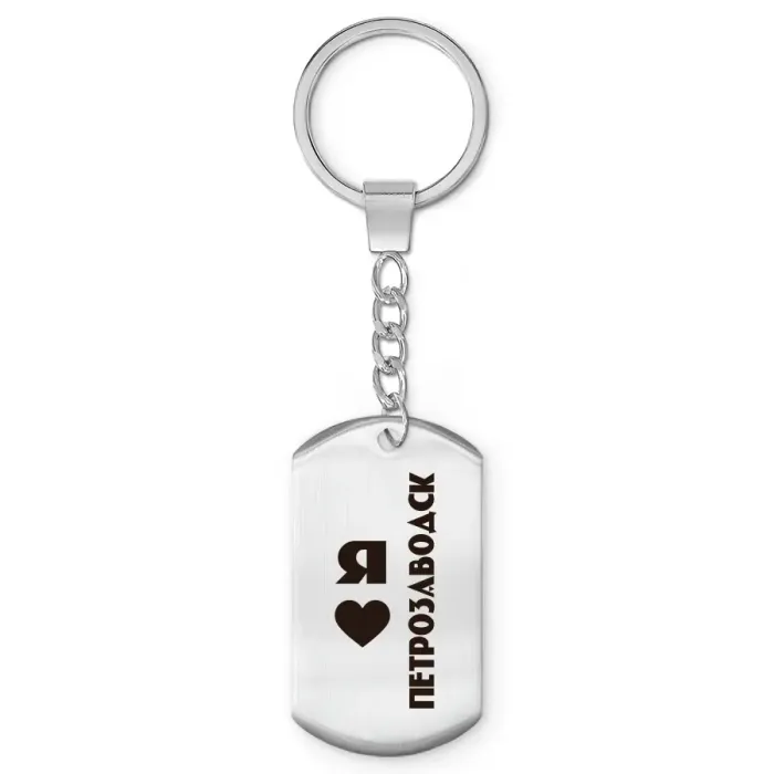Брелок-жетон из нержавеющей стали с гравировкой «Я люблю Петрозаводск».