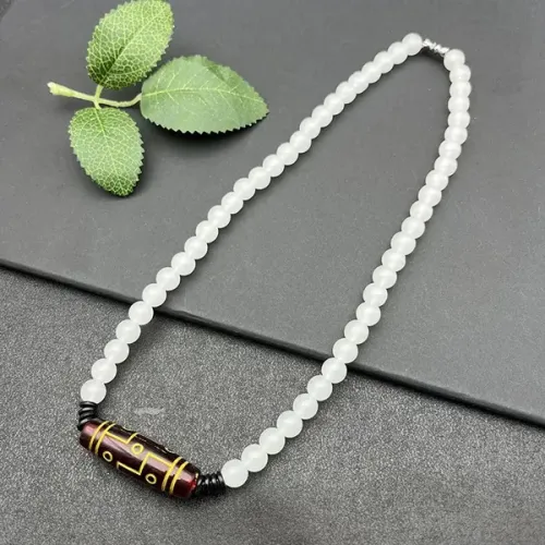 Бусы-чётки с бусиной Дзи 9 глаз. Изготовлены из натурального агата и синтетического белого нефрита.