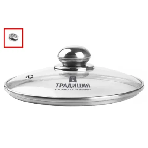 Крышка стеклянная с металлическим ободком диаметром 24 см от TM «Традиция» предназначена для использования с кастрюлями и сотейниками. Основные преимущества включают термостойкое стекло, обод и ручку из нержавеющей стали.