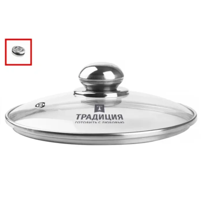 Стеклянная крышка с металлическим ободом диаметром 26 см от бренда Appetite (TM «Традиция») предназначена для использования с кастрюлями и сковородами соответствующего размера. Крышка изготовлена из термостойкого стекла и нержавеющей стали, что обеспечивает её прочность и долговечность.