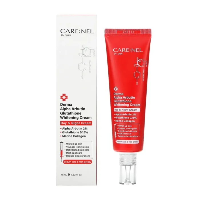Осветляющий крем для лица CARENEL Derma Alpha Arbutine Glutathione Whitening Cream от GAON COSMETICS разработан для выравнивания тона кожи и осветления пигментных пятен. Основные активные компоненты — альфа-арбутин (2%) и глутатион (0,15%), которые эффективно борются с гиперпигментацией. Дополнительно в состав входит морской коллаген, способствующий увлажнению и улучшению текстуры кожи.