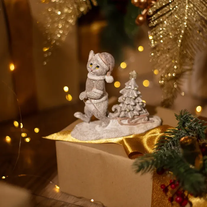 Статуэтка Котик с елочкой 13х5,5х11,5 см – Lefard