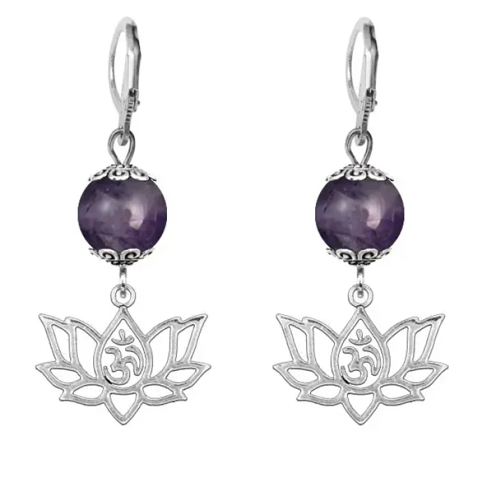 Серьги-амулеты Ом и лотос (защита, гармония, развитие), аметист SE-MKA21-30