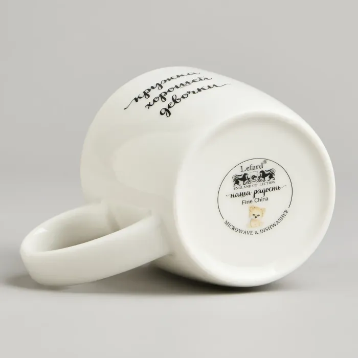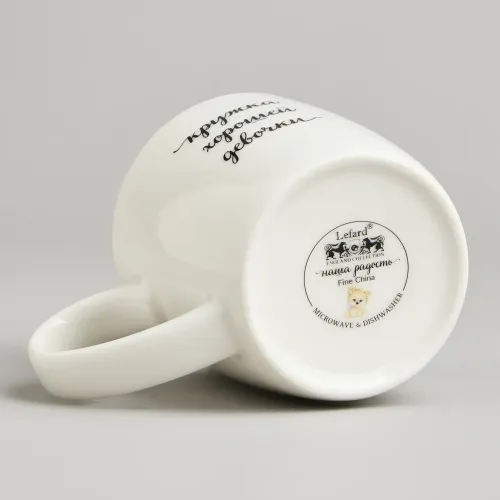 Фарфоровую кружку можно мыть в посудомоечной машине. Она сочетается с другими предметами из коллекции «Наша радость» для создания единого стиля сервировки.