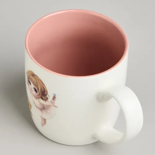 Кружка изготовлена из фарфора, материала, известного своей прочностью и гигиеничностью. Поверхность изделия украшена ярким декором. Наличие удобной ручки облегчает использование.