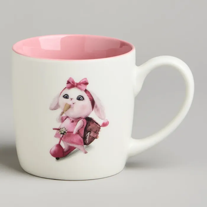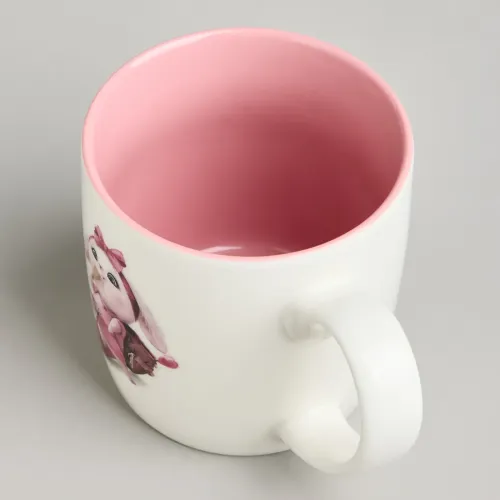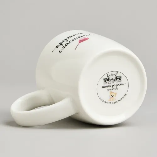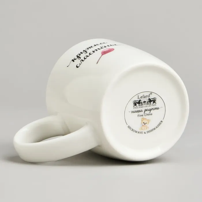 Кружка выполнена из фарфора, материала, известного прочностью и гигиеничностью. Конструкция включает удобную ручку для комфортного использования. Изделие соответствует нормам безопасности для детской посуды.