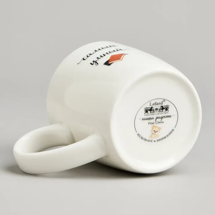 Кружка изготовлена из фарфора, что обеспечивает гигиеничность и устойчивость к внешним воздействиям. Материал проходит обжиг при высоких температурах, что гарантирует его прочность. Изделие поставляется в подарочной упаковке.