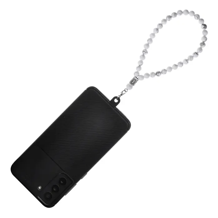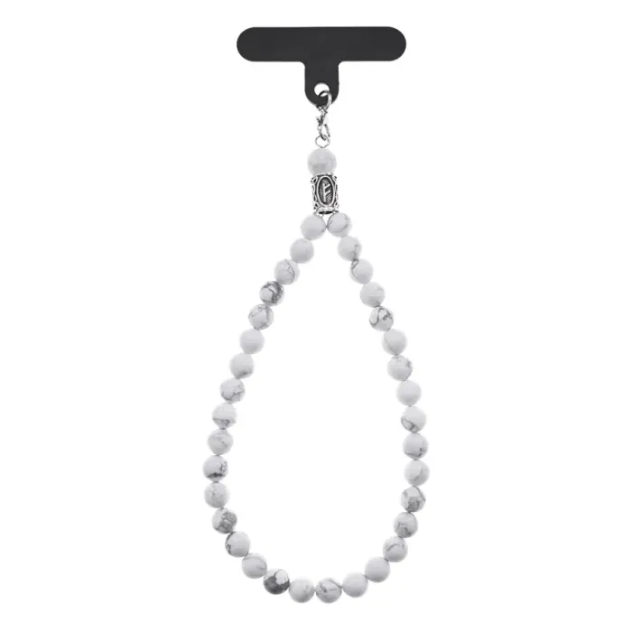 Петля для телефона из бижутерного сплава с натуральным кахолонгом и пластиком. На бусине изображена руна Феху.