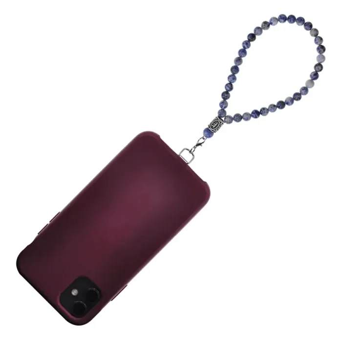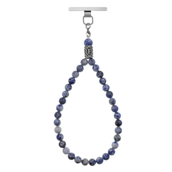 Петля для телефона ручной работы из нержавеющей стали с бусинами из натурального содалита и руническим символом Феху.