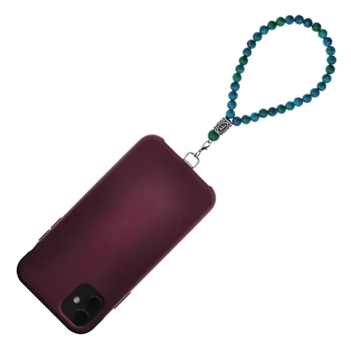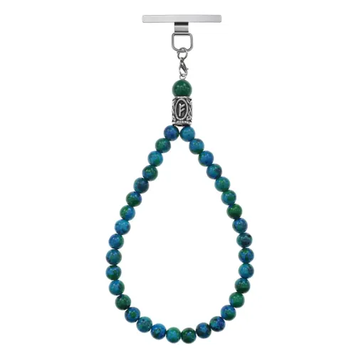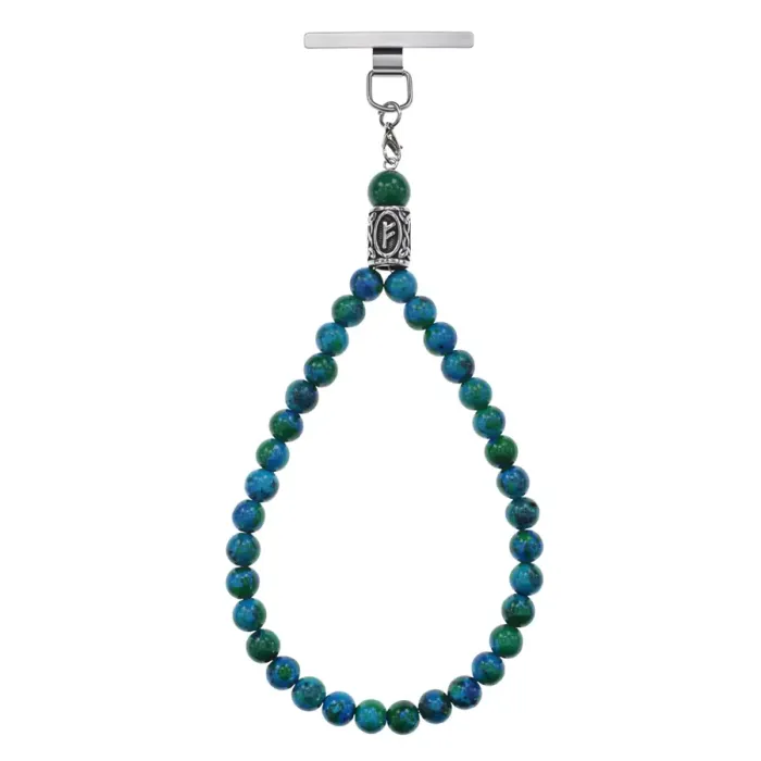 Петля для телефона из нержавеющей стали с бусинами из синтетической хризоколлы и руническим элементом.