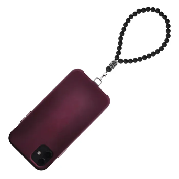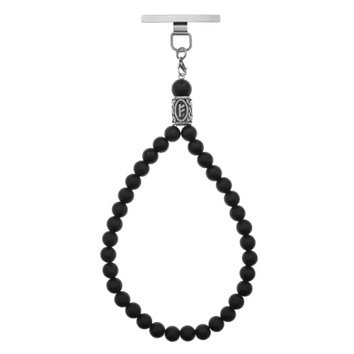 Петля для телефона ручной работы из нержавеющей стали с бусинами из синтетического шунгита и рунической бусиной Феху.