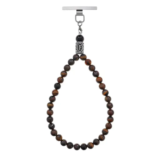 Петля для телефона ручной работы из нержавеющей стали с бусинами из натурального тигрового глаза и руническим символом.