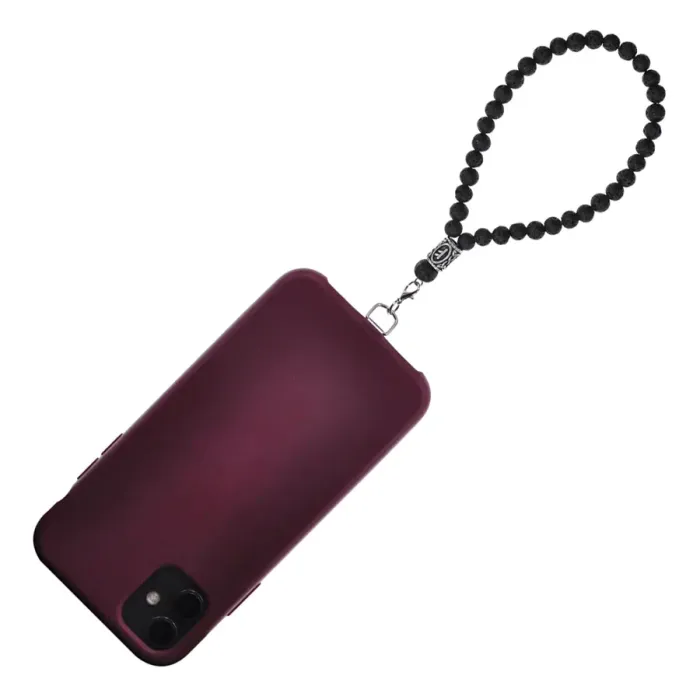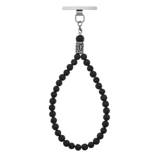 Петля для телефона ручной работы из нержавеющей стали с бусинами из натуральной лавы и руническим элементом.