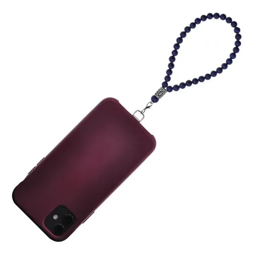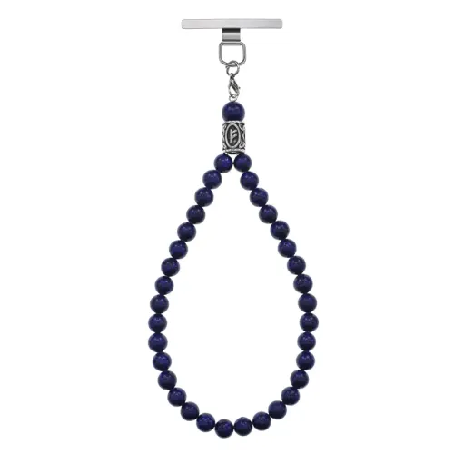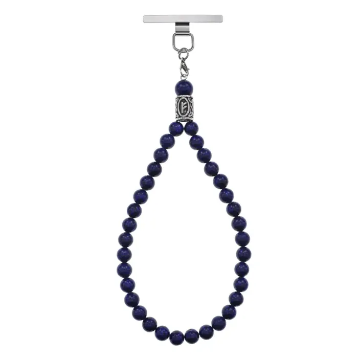 Петля для телефона из нержавеющей стали с бусинами из натурального лазурита и руническим символом.
