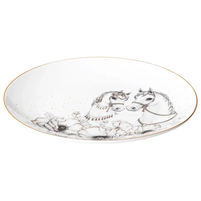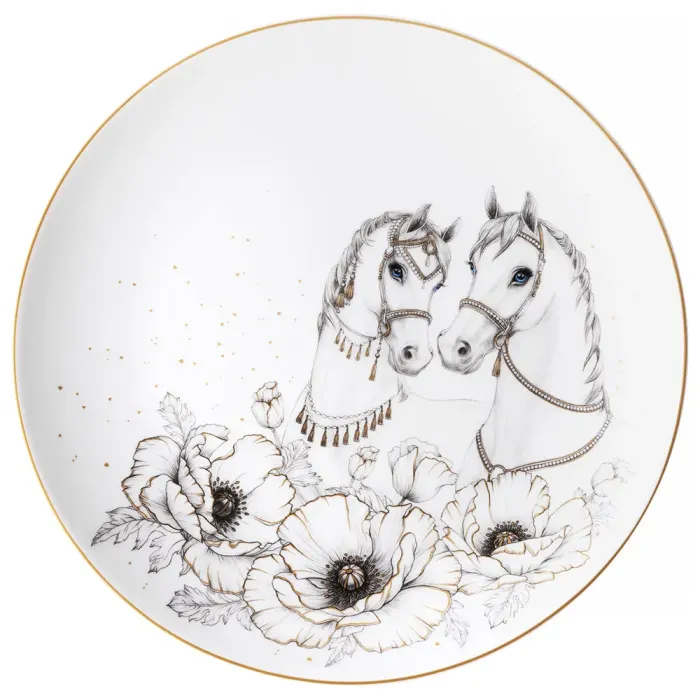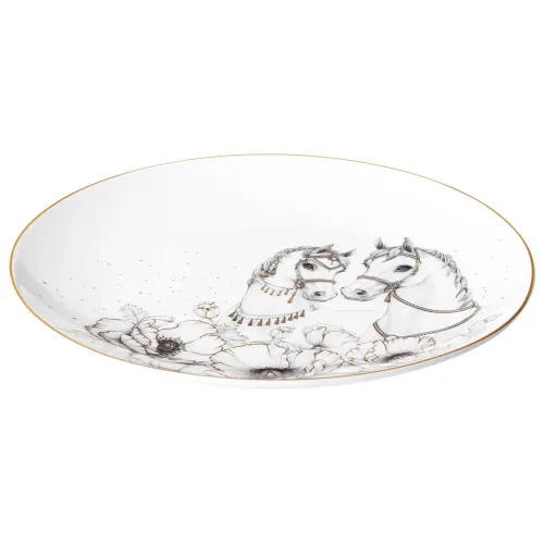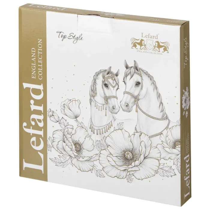 Закусочная тарелка Lefard из коллекции Top Style предназначена для сервировки закусок и холодных блюд. Изделие изготовлено из тонкостенного фарфора и украшено декоративным рисунком с изображением лошадей и маков.