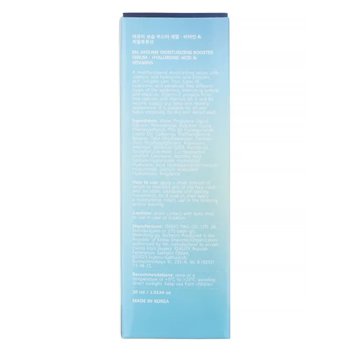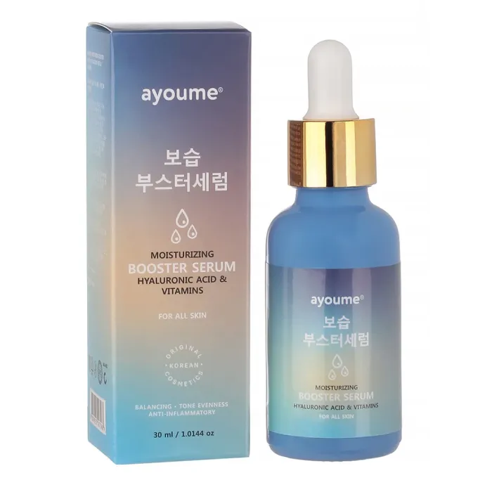 Многофункциональная увлажняющая сыворотка Moisturizing BOOSTER SERUM от бренда Ayoume разработана для комплексного ухода за кожей. В ее состав входят четыре вида гиалуроновой кислоты, которые проникают в различные слои эпидермиса, улучшая текстуру и упругость кожи. Витамин C защищает кожу от вредного воздействия свободных радикалов, а витамины B5, E и B3 способствуют восстановлению и питанию кожи, поддерживая ее здоровый внешний вид. Сыворотка подходит для всех типов кожи, особенно рекомендуется для сухой и обезвоженной.