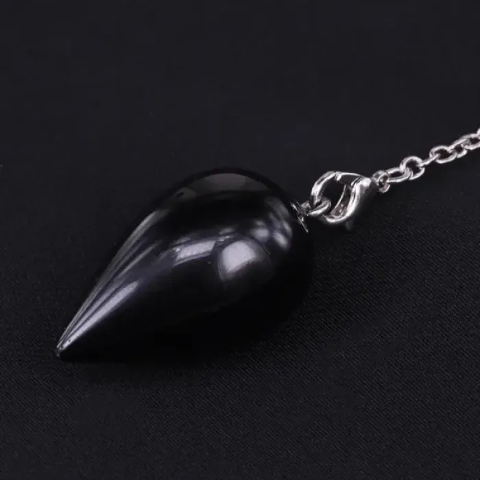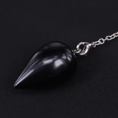 Маятник для биолокации из бижутерного сплава с покрытием под серебро и натурального чёрного агата.