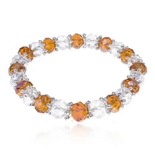 Стрейч-браслет из бижутерного сплава и стеклянных бусин с покрытием под серебро.