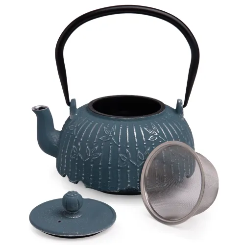 Корпус изделия изготовлен из чугуна, что обеспечивает его прочность и долговечность. Внутренняя поверхность покрыта эмалью, которая сохраняет гигиеничность и нейтральность к вкусу напитков. Чайник комплектуется ситечком для удержания заварки, что упрощает процесс заваривания.