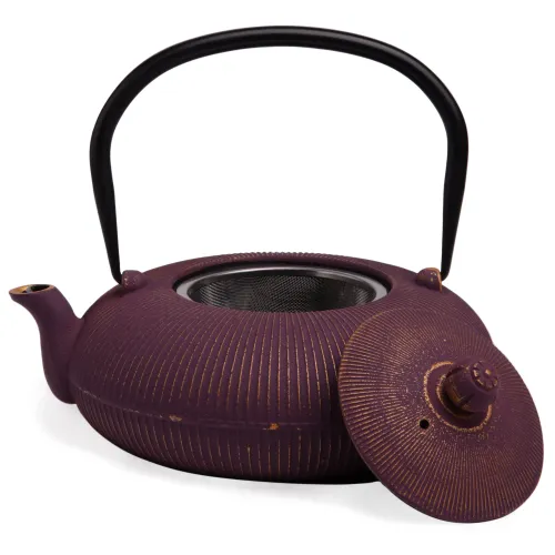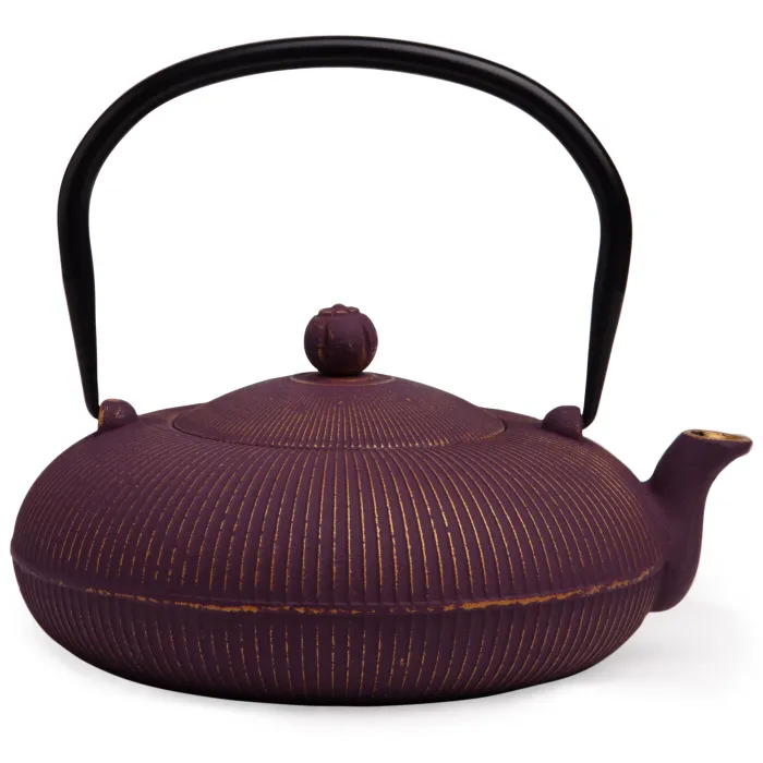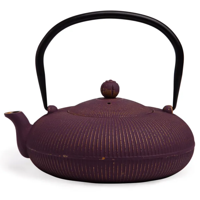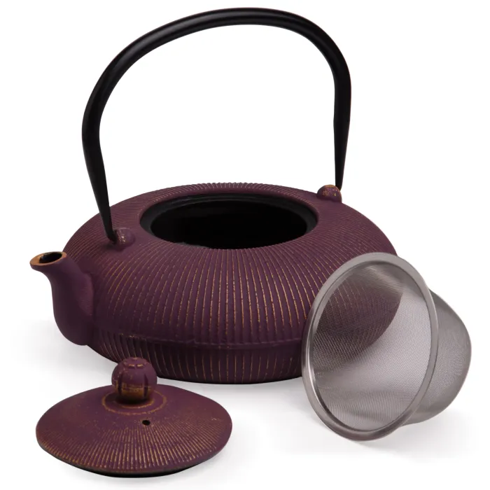 Корпус чайника изготовлен из чугуна. Внутренняя поверхность покрыта эмалью, что повышает гигиеничность и упрощает уход. Конструкция включает ситечко для фильтрации заварки, обеспечивающее чистоту напитка. Компактные габариты позволяют вмещать до 1200 мл жидкости.