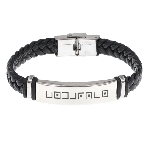 Материал и изготовление: Кожа, нержавеющая сталь. Плетёная конструкция с гравировкой.