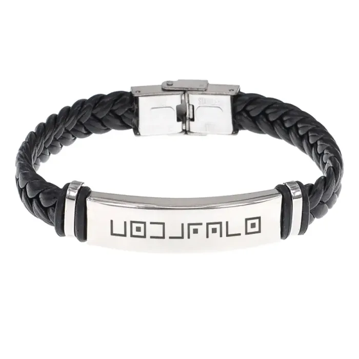Кожаный браслет с гравировкой «Богатство» — сувенирный аксессуар из кожи и нержавеющей стали.