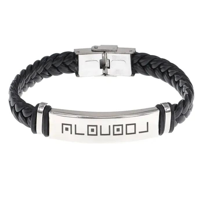 Кожаный браслет с гравировкой «Свобода». Плетёный аксессуар из кожи и нержавеющей стали.
