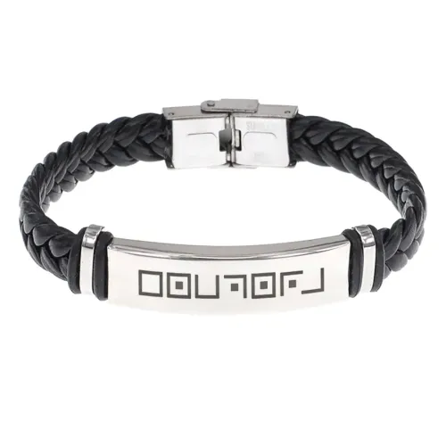 Кожаный браслет с гравировкой 'Доброта'. Плетёный аксессуар для ношения на запястье.