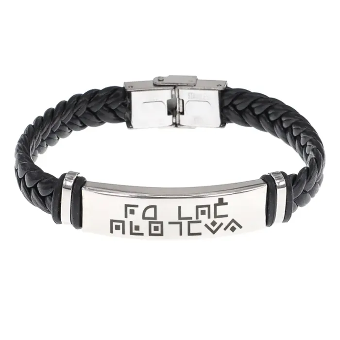Кожаный браслет с плетёной конструкцией и гравировкой «Ты все сможешь».