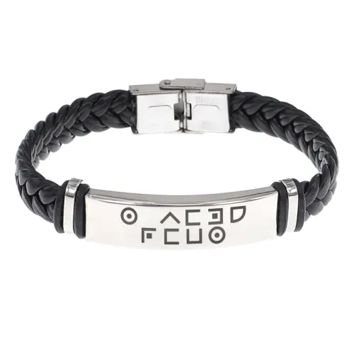 Кожаный браслет с гравировкой «Я ценю тебя». Плетёный аксессуар из кожи и нержавеющей стали.