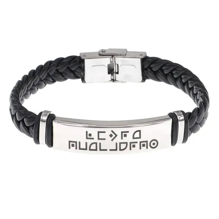 Кожаный браслет с гравировкой «Мечты сбываются». Плетёный аксессуар из кожи и нержавеющей стали.