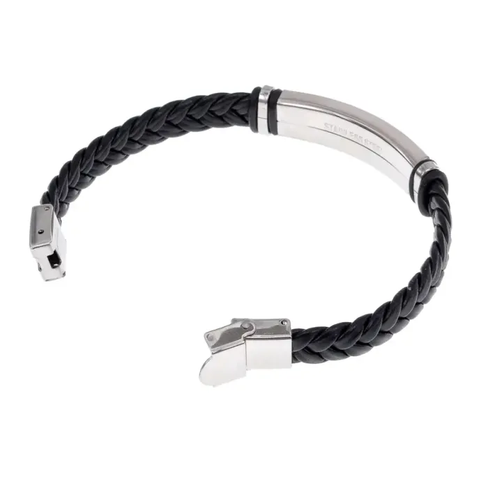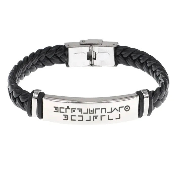 Кожаный браслет с гравировкой «Нейтрализация негатива». Плетёный аксессуар из кожи и нержавеющей стали.