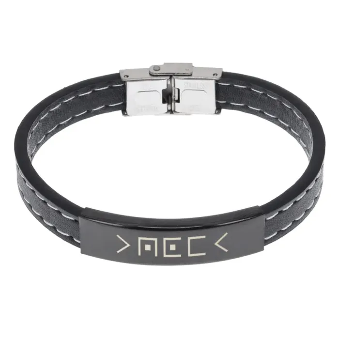 Кожаный браслет с гравировкой. Материал: экокожа и нержавеющая сталь.