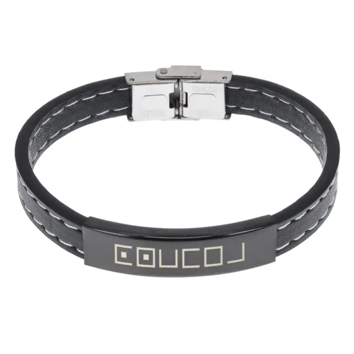 Материал и изготовление: Экокожа, нержавеющая сталь. Элементы с гравировкой.