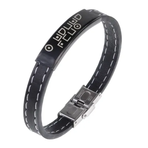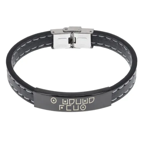 Материал и изготовление: Экокожа, элементы из нержавеющей стали, нанесена гравировка.