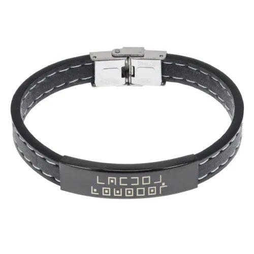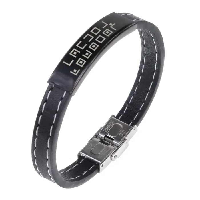 Кожаный браслет с гравировкой «Всегда молодой». Сувенирный аксессуар из экокожи и нержавеющей стали.