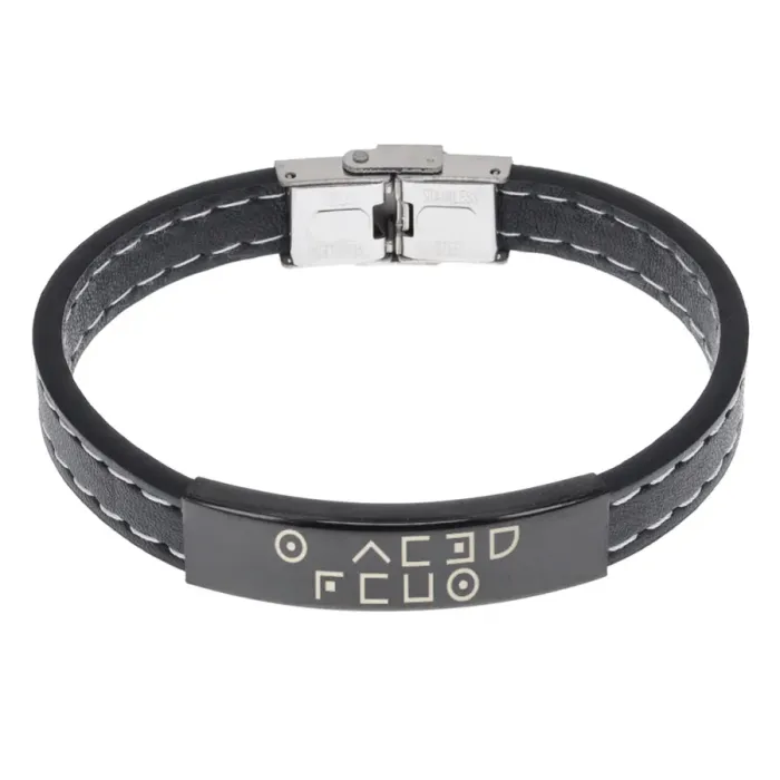 Кожаный браслет с гравировкой текста. Сувенирный аксессуар.