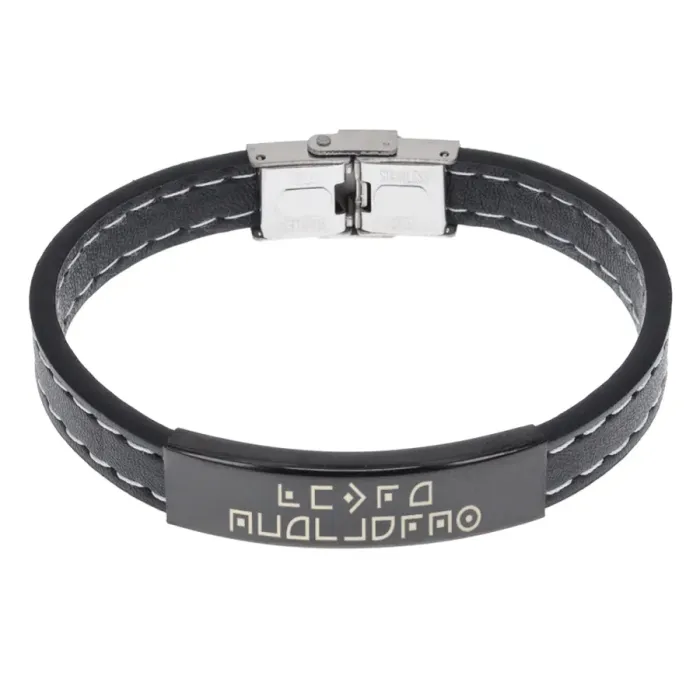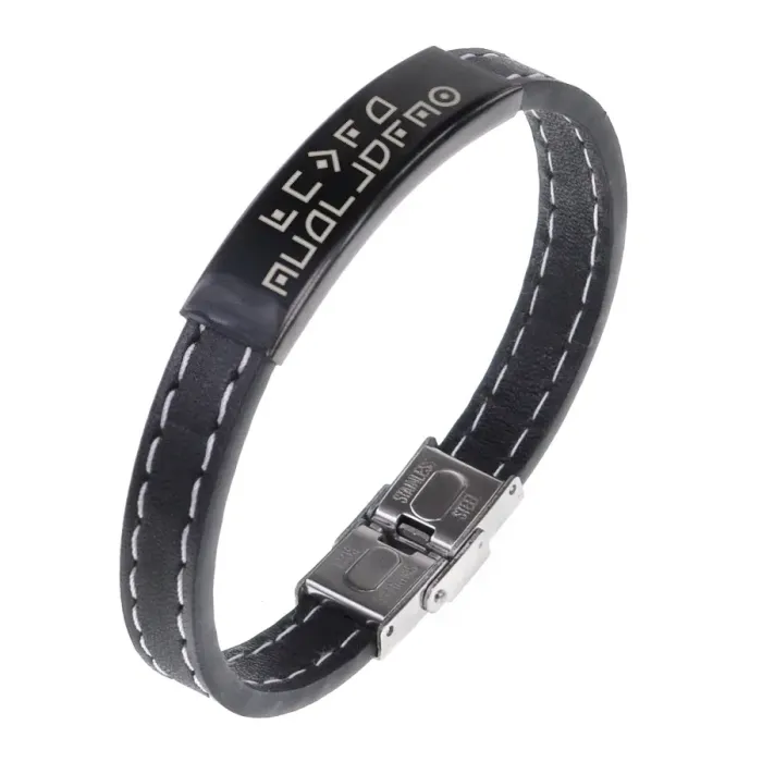 Браслет из экокожи с гравировкой текста.