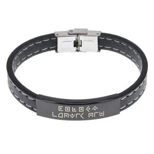 Кожаный браслет с гравировкой 'Помощь высших сил'. Изготовлен из экокожи и нержавеющей стали.