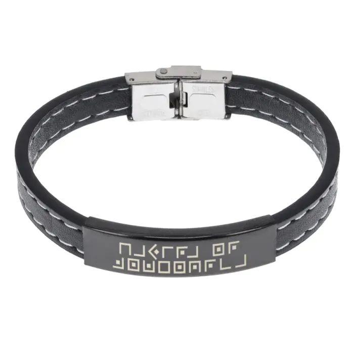 Кожаный браслет с гравировкой 'Защита от колдоства' — сувенирный аксессуар из экокожи и нержавеющей стали.
