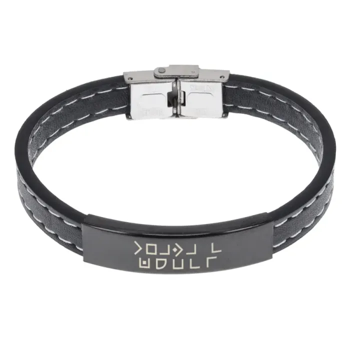 Кожаный браслет с гравировкой 'Удача в любви'.