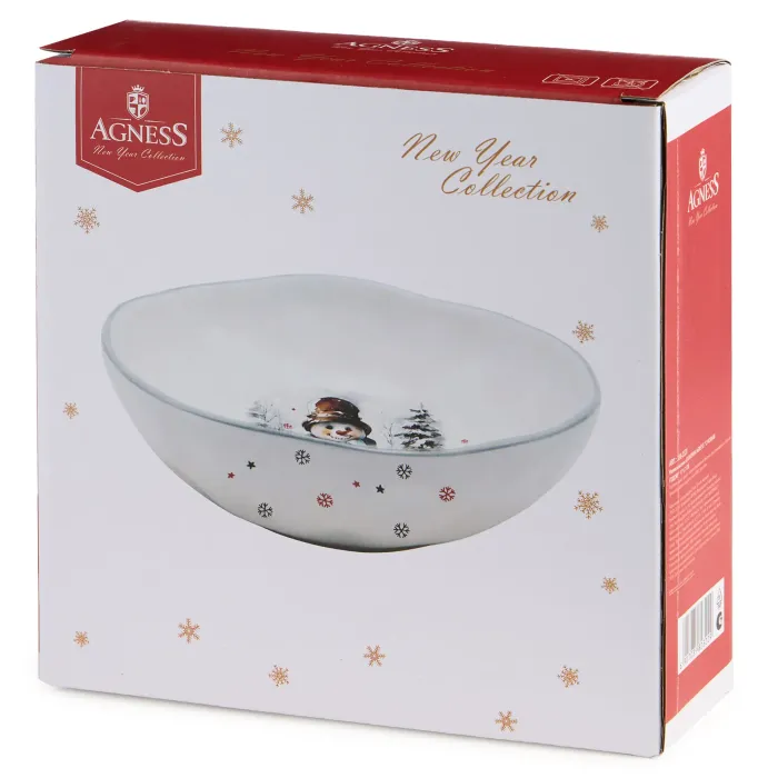 Салатник Agness из серии «С Новым Годом!» предназначен для сервировки блюд на праздничном столе. Изделие изготовлено из доломитовой керамики и украшено тематическим декором.