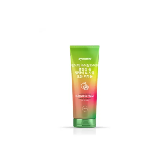 Пенка для лица Nature Vitalizing Cleansing Foam Snail & Grapefruit от бренда Ayoume — это эффективное средство для ежедневного очищения и восстановления кожи. Содержит муцин улитки и экстракт грейпфрута, которые помогают удалить загрязнения и остатки макияжа, одновременно увлажняя и тонизируя кожу. Формула обогащена антиоксидантами, что способствует защите кожи от негативных воздействий окружающей среды. Масла жожоба, авокадо и оливы в составе делают кожу мягкой и питают её изнутри. Пенка подходит для всех типов кожи, включая тусклую и обезвоженную, возвращая ей свежесть и упругость.