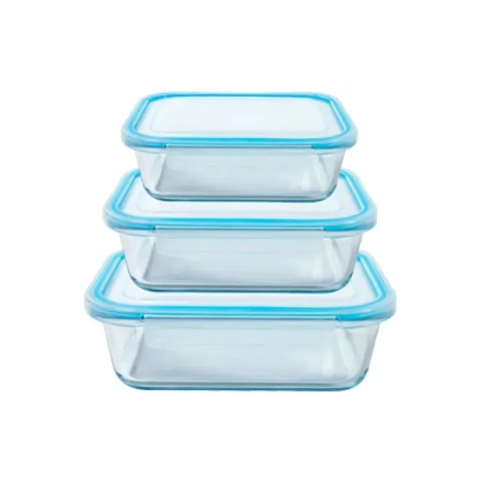 Набор контейнеров стеклянных прямоугольных 3 предмета 370 мл, 640 мл, 1.04 л синий ТМ Appetite
