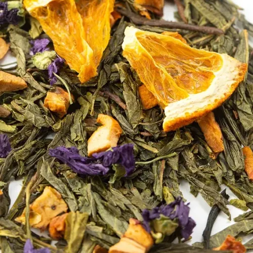 Тип: ароматизированный зелёный чай (сенча) с фруктово-пряными добавками